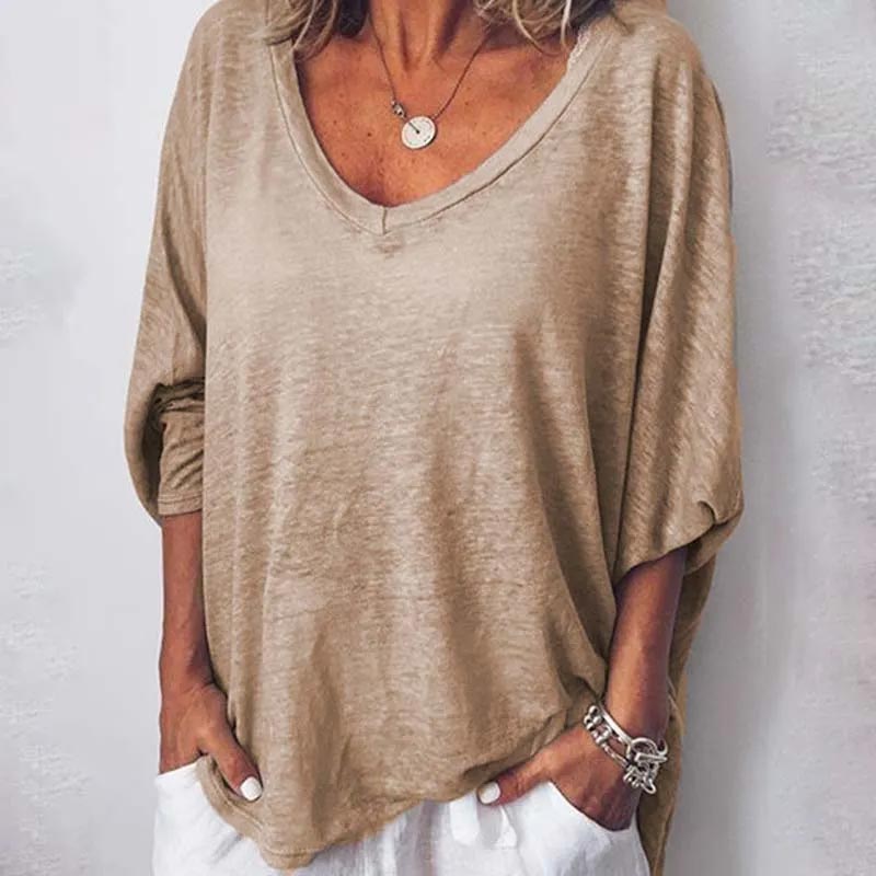 Experience the ultimate comfort and style with our Casual Solid Color V-neck Bat-sleeve Loose T-Shirt. Crafted for a relaxed and comfortable fit, this top is a must-have for any wardrobe.