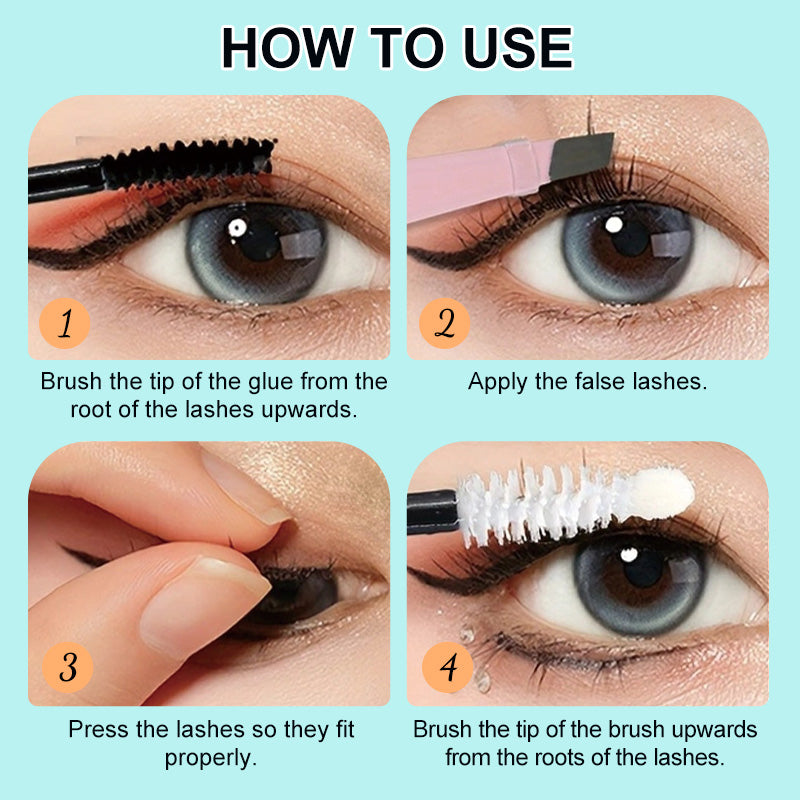 Step 1: Brush the tip of the glue from the root of the lashes upwards and apply evenly.