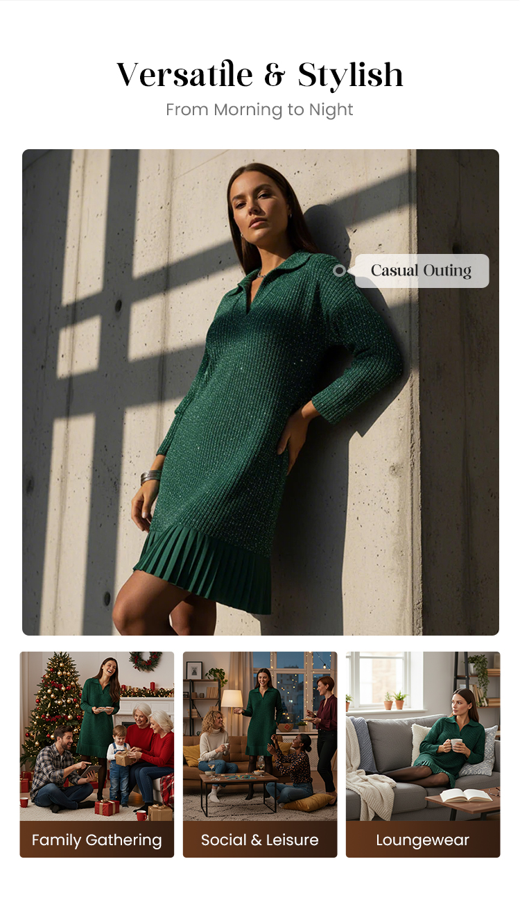 Women’s Sparkle Lapel A-Line Short Dress | Chic & Shimmering