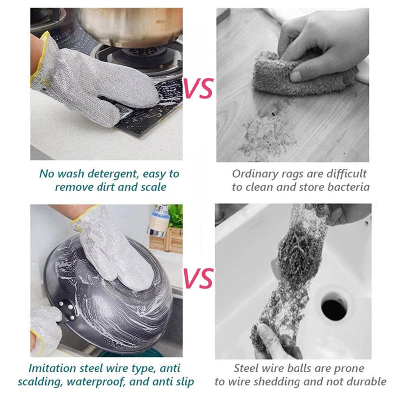GENTLE ON SURFACES - Unlike traditional cleaning steel balls these gloves are soft that won't scratch or damage the surfaces you're cleaning.