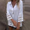 HOLLOW PATCHWORK & RUFFLE TRIM: This unique design along the hemline and sleeves adds a feminine and romantic touch to the shirt, creating a stylish and eye-catching aesthetic.