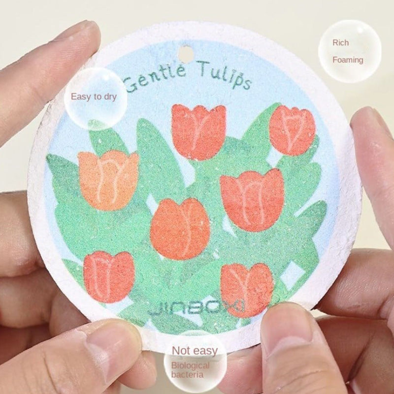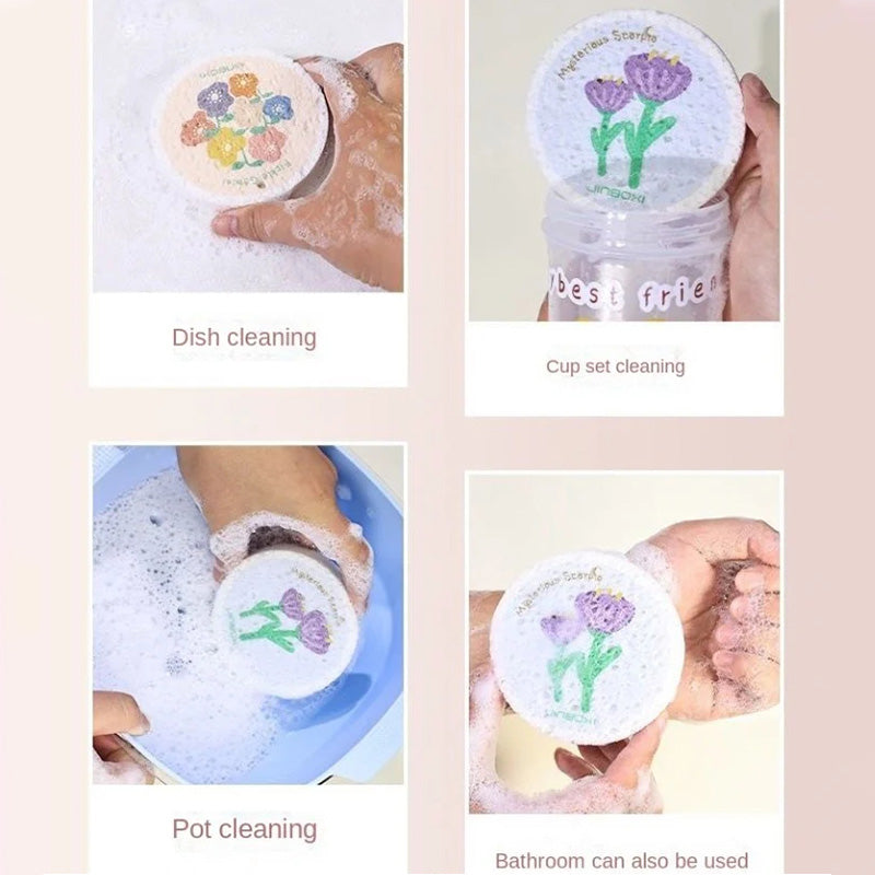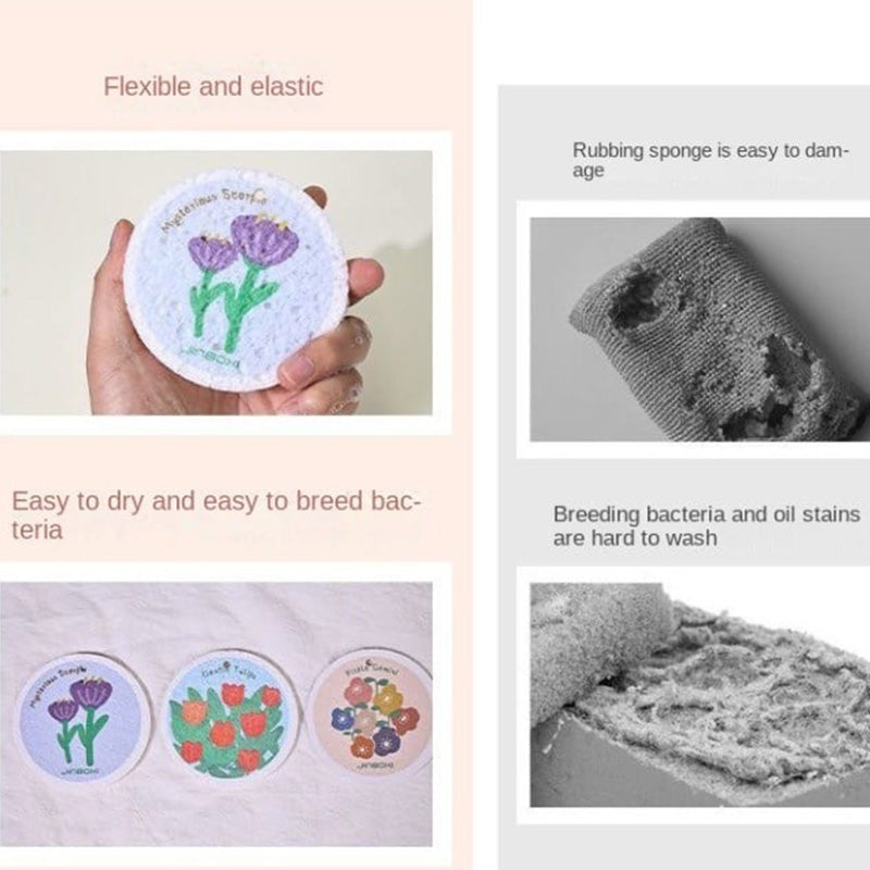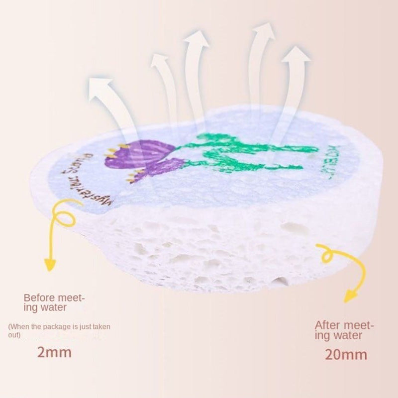 MAGICAL PROPERTY - In the state of water absorption, the compressed wood pulp sponges become soft and elastic immediately, while they turn hardened and tough again after drying. It is pretty easy to wipe away dirt without leaving scratches with our sponges.