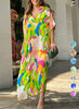 - Elegant long dress! This bohemian floral print summer maxi dress is an essential part of women's wardrobe. The all-round deep V-neckline perfectly accentuates your sexy decollete and collarbone. A bold floral print gives this ruched short sleeve dress a vibrant look that will make you stand out from the crowd.