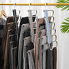 Tired of your closet being cluttered with multiple pairs of trousers? This space-saving multiple trouser hanger is the perfect solution! With its non-slip foam grips and chrome hooks, it will keep your trousers securely in place and organized. The hanger can hold pairs of trousers, so you can keep your closet neat and tidy.