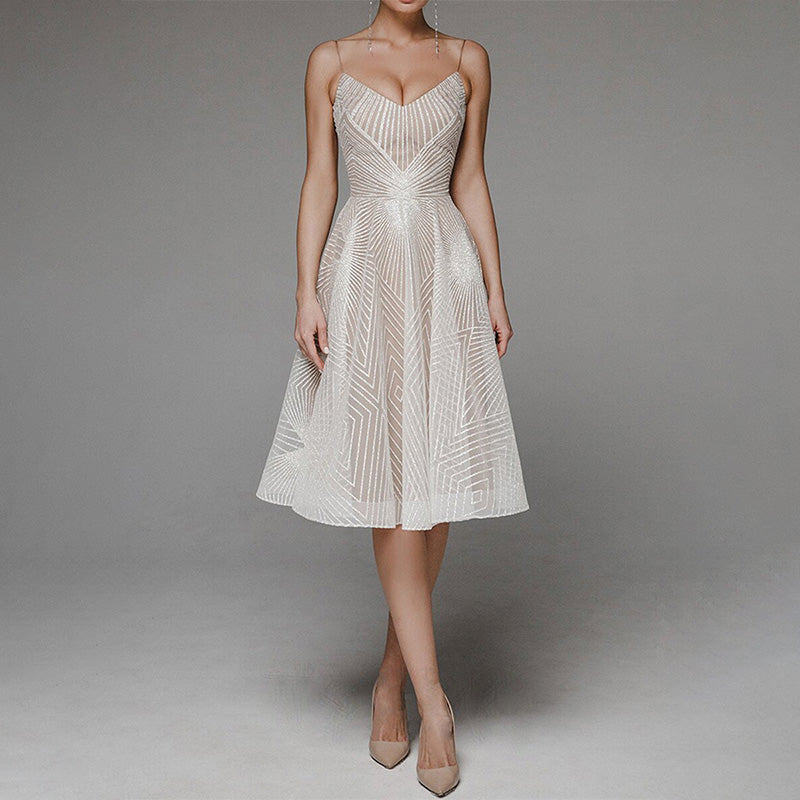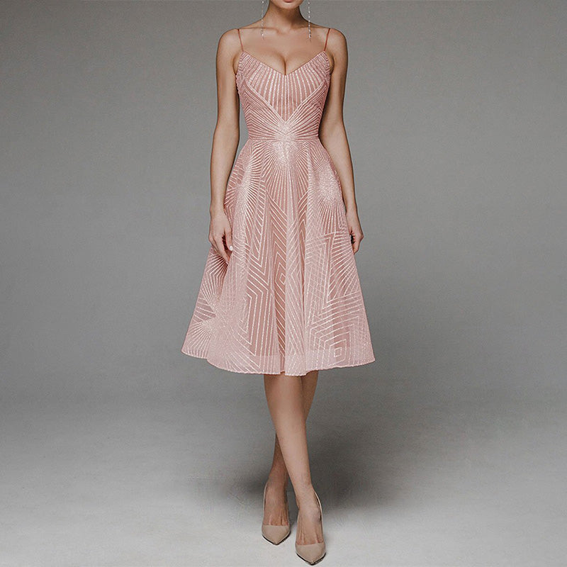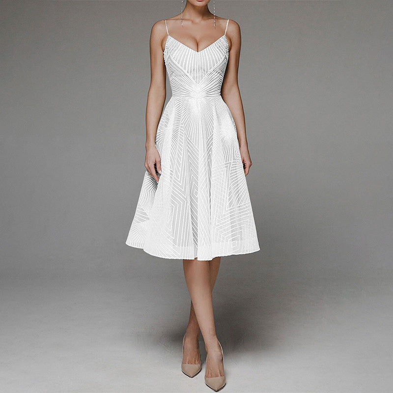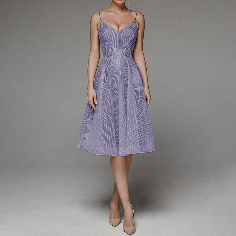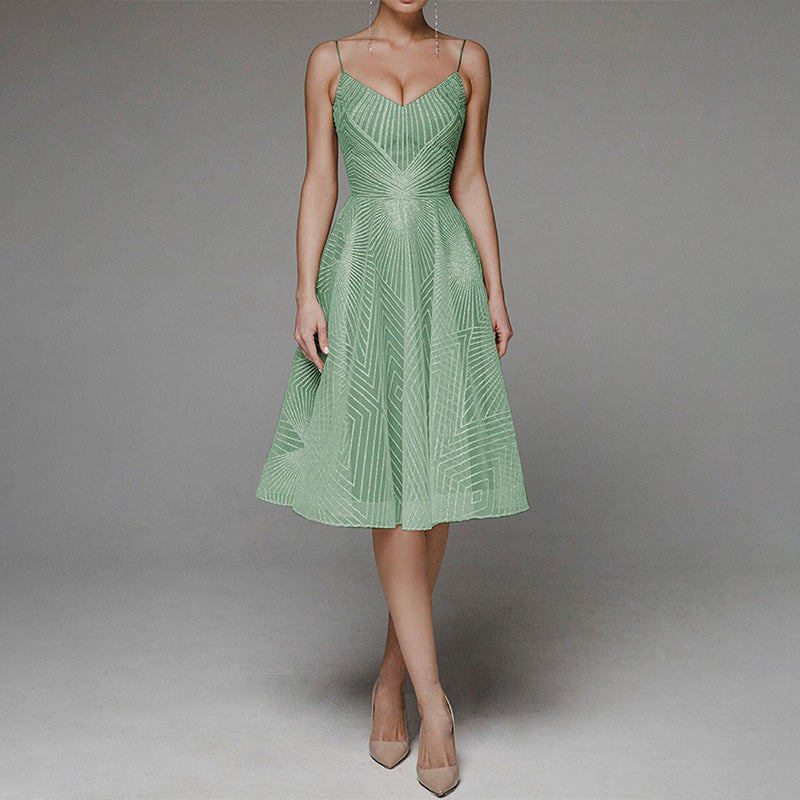 CHIC V-NECKLINE: The V-neck adds a touch of allure and sophistication, enhancing the overall elegance of the dress.
