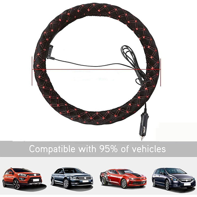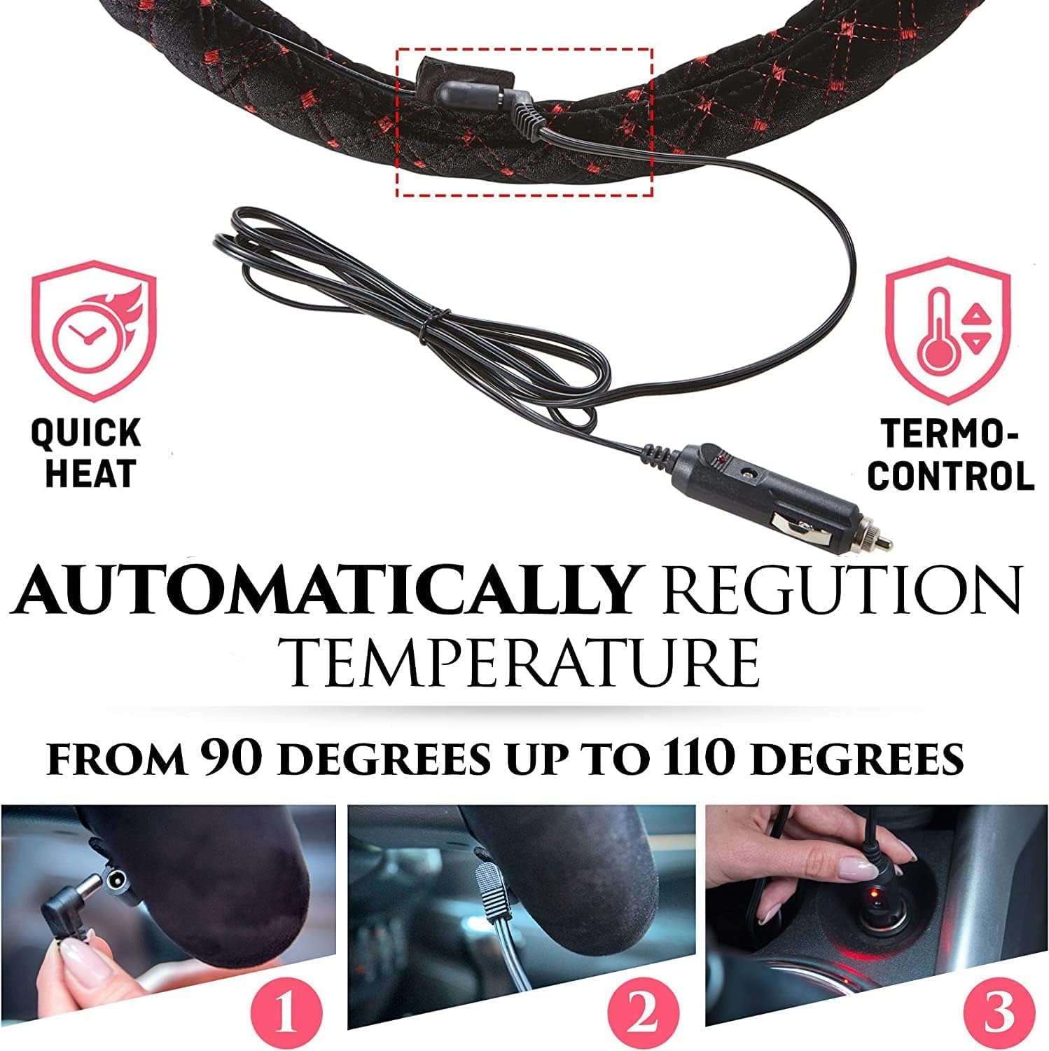 WARM STEERING WHEEL COVER - Heating car steering wheel cover equip with the insulation, flame-retardant protection. It is very easy to use this steering wheel cover in your vehicle, you just need to plug it into your 12V cigarette lighter adapter and you will feel warm in 1-3 minutes.