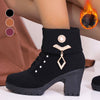 Women's Chunky Heeled Ankle Boots with Rhinestone Decor