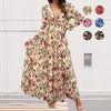 Women's Floral V-Neck Long Sleeve Flowy Dress
