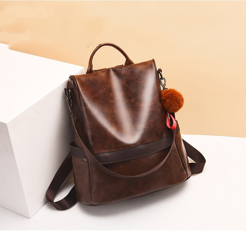 Women's Large Capacity Soft Leather Casual Backpack*1