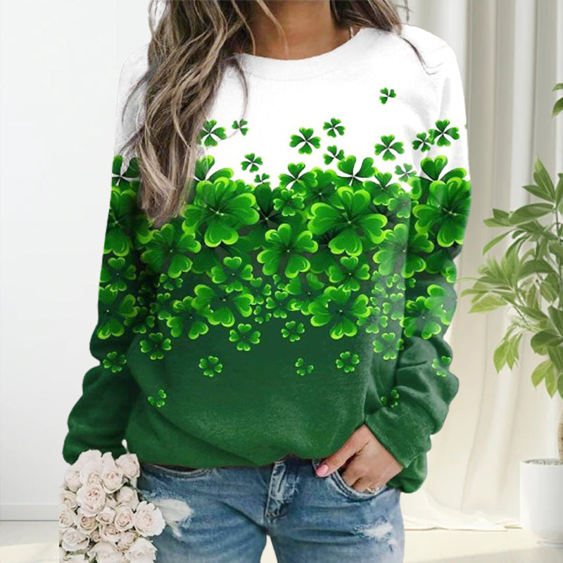 1*Women's Long Sleeve Clover Crew Neck Casual Top
