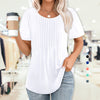 Women's Summer Round Neck Short Sleeve Pleated T-Shirt