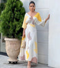 This enchanting dress effortlessly combines simplicity and elegance with its clean lines, fresh color palette, and complementary V-neck design, offering a timeless and sophisticated look that is neither extravagant nor ordinary.